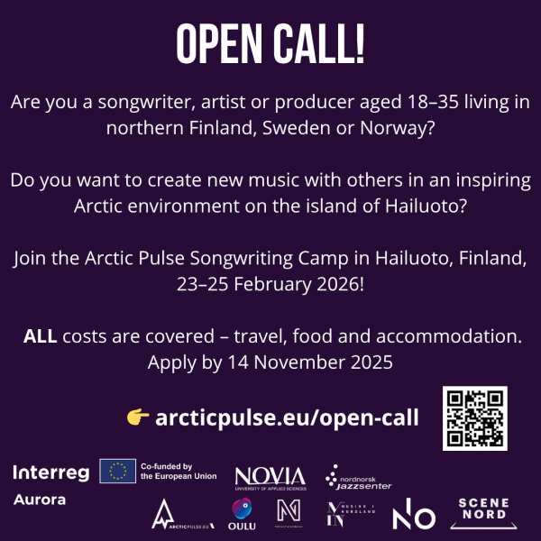I februari 2026 ordnar projektet Artic Pulse (med Novia som samarbetspart) ett låtskrivarläger i Hailuoto för 20–25 unga artister, producenter och låtskrivare från norra Finland, Sverige och Norge. Under två intensiva dagar, 23–25 februari, samlas deltagarna på Luovo havshotell i Hailuoto, Finland.
